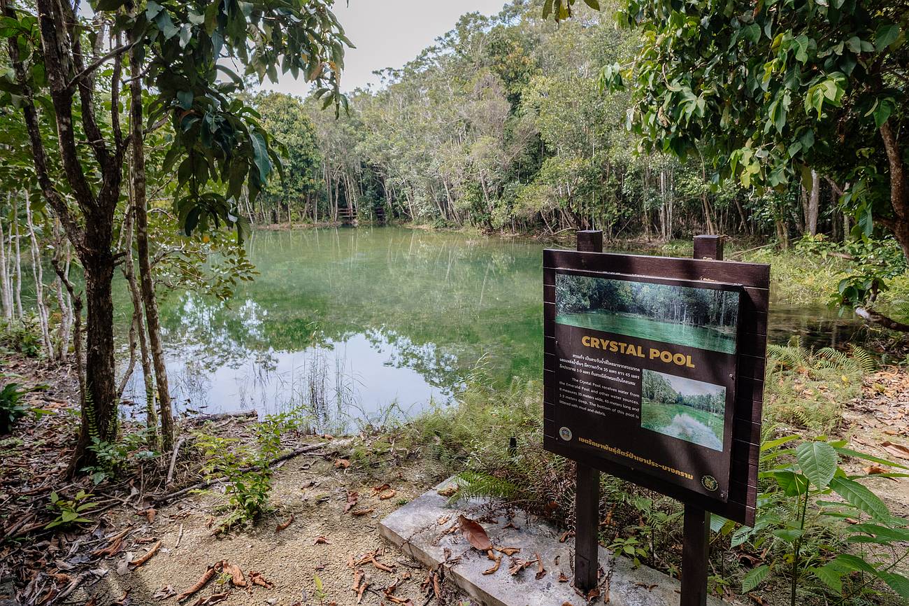Der Crystal Pool ist ein weiterer natürlicher Pool im Khao Phra Bang Khram Nature Reserve und verdankt seinen Namen dem außergewöhnlich klaren Wasser. Oft wird der Begriff „Crystal Pool“ auch als Synonym für den Emerald Pool verwendet, tatsächlich bezieht sich Crystal Pool aber meist auf die flacheren, lichtdurchfluteten Randbereiche rund um den Emerald Pool, wo das Wasser besonders transparent wirkt.
