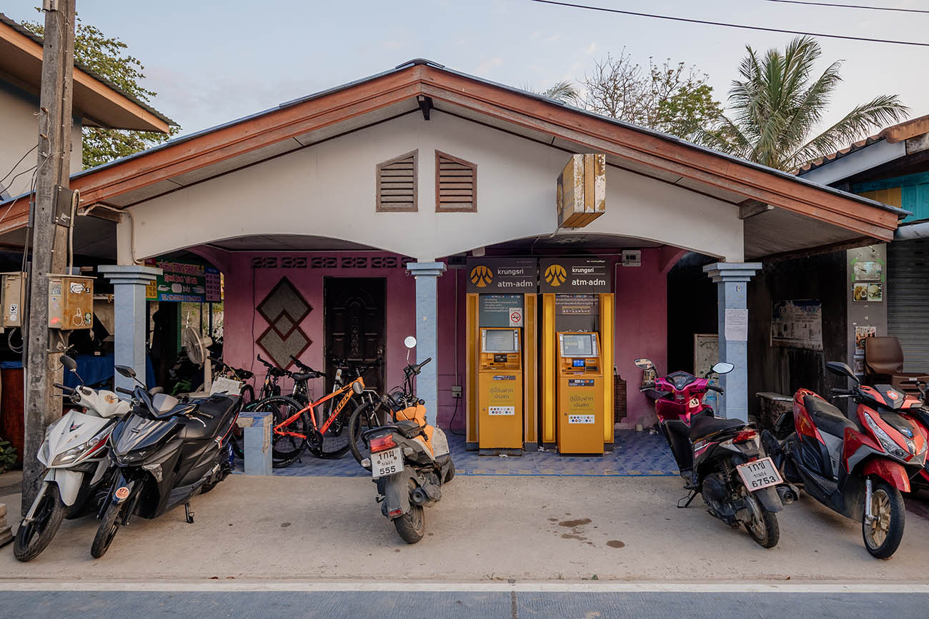 Auf Koh Payam gibt es zwei Geldautomaten der Krung Sri Bank, die sich direkt nebeneinander am Pier befinden. Klingt praktisch – hat aber einen Haken: Die Automaten werden nur selten aufgefüllt und können schnell leer sein, besonders in der Hochsaison. Eine zuverlässige Bargeldversorgung vor Ort ist daher nicht garantiert. Die Empfehlung lautet deshalb: Genügend Bargeld bereits auf dem Festland in Ranong abheben, bevor man die Fähre besteigt. Beim Abheben an thailändischen Bankautomaten fällt in der Regel eine Gebühr von 220 THB pro Transaktion an. Kreditkarten werden von den meisten Unterkünften und Restaurants nicht akzeptiert – Bargeld ist auf der Insel nach wie vor König.