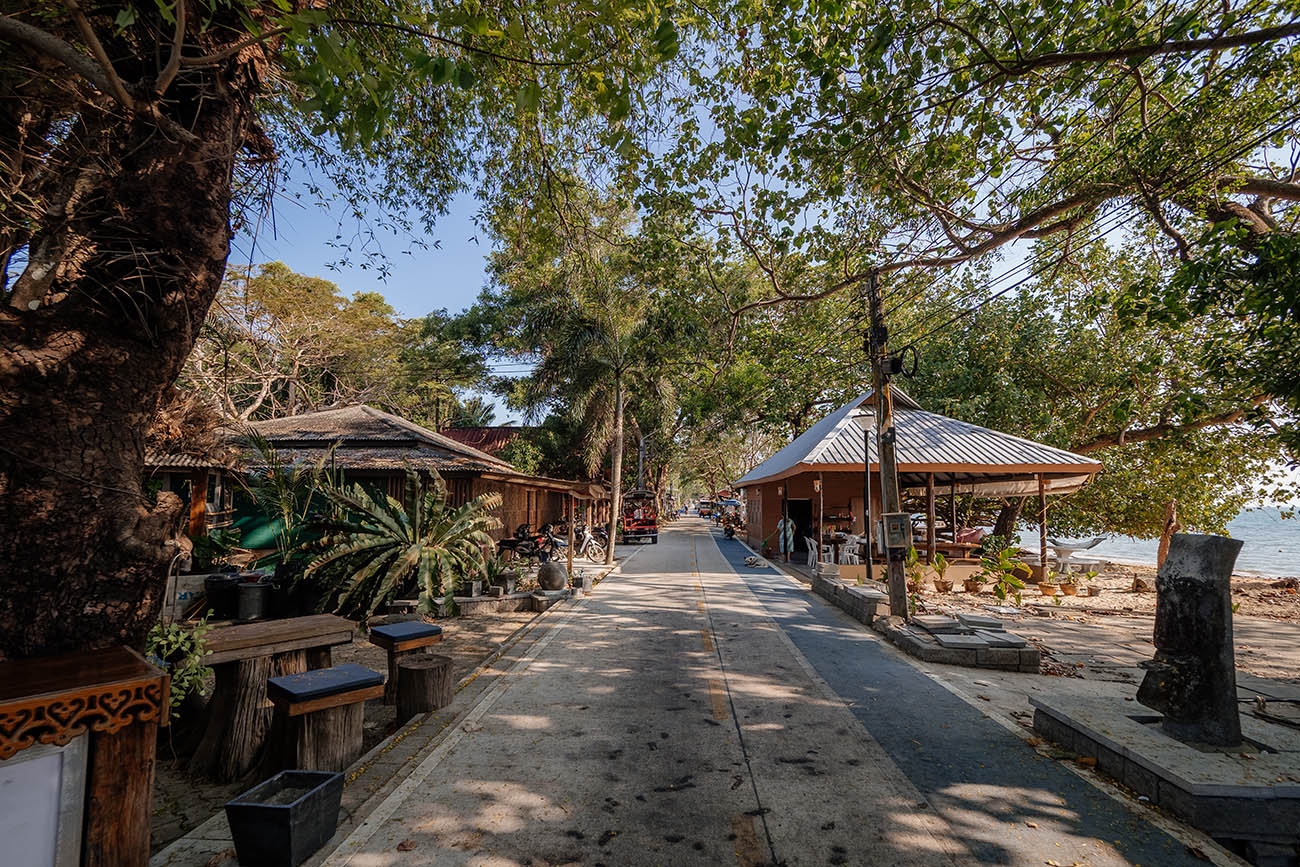 Das kleine Dorf im Zentrum der Insel ist das soziale und wirtschaftliche Herz von Koh Phayam. Hier trifft das Leben zusammen: Fischer und Händler, Backpacker und Aussteiger, buddhistische Mönche und rastende Motorrollerfahrer. Eine Hauptstraße – sogar mit einem blau markierten Fahrradweg versehen – durchzieht das Dorf, gesäumt von kleinen Läden, Minimart-Geschäften mit dem Nötigsten und kleinen Restaurants mit frischem Fisch.