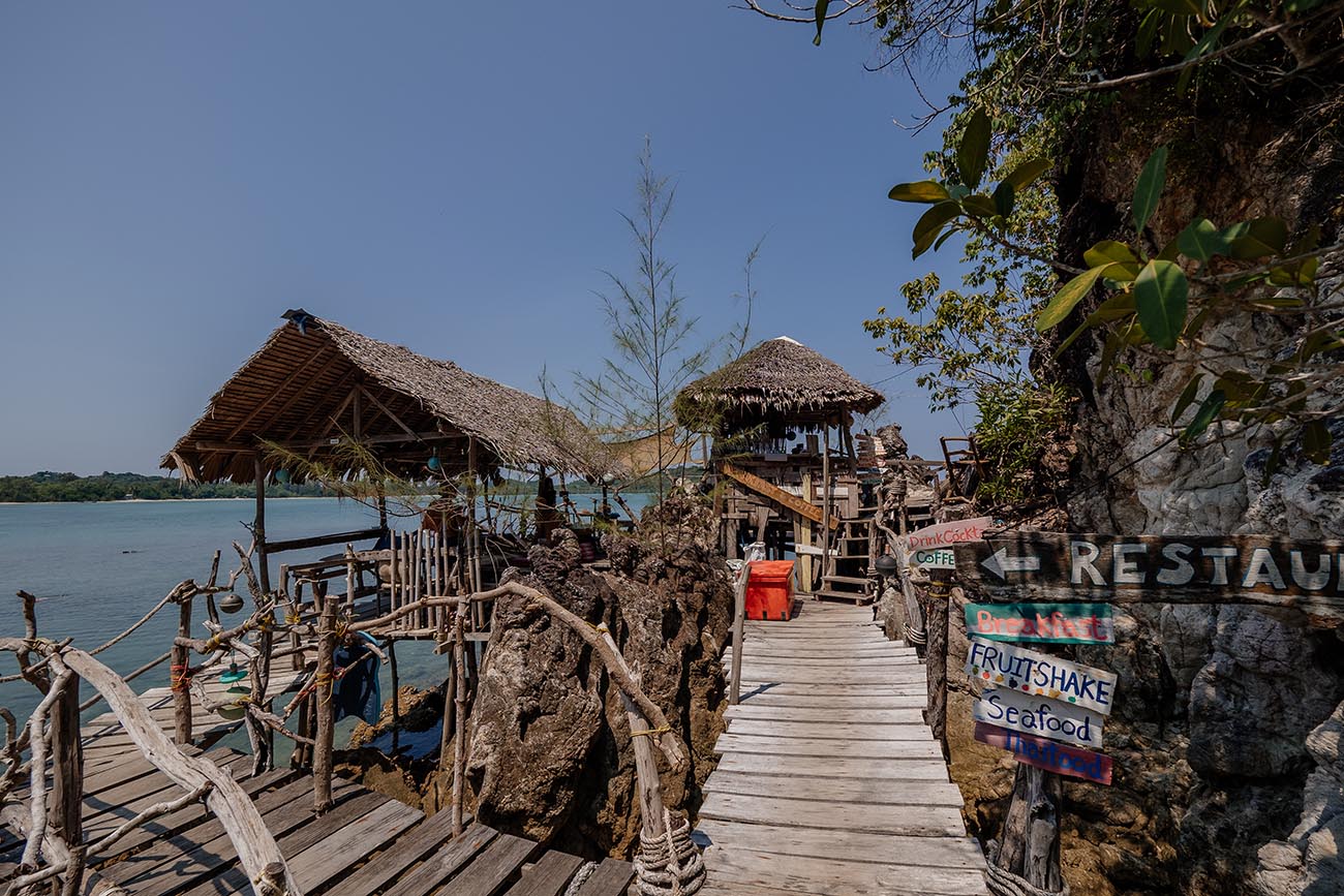 Ein paar Meter weiter im Inneren des Dorfes liegt die Eagle Bar, die mit einer erhöhten Lage und einer besonders schönen Aussicht auf die Mangroven und das Meer überrascht. Kein Trubel, kein Luxus – sondern ein authentischer Einblick in das einfache Leben der Moken, das Koh Phayam bis heute so besonders macht.