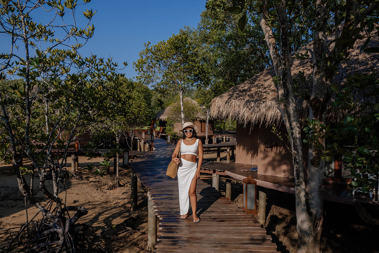 Während unseres Aufenthalts auf Koh Phayam haben wir im The Blue Sky Resort @ Koh Phayam übernachtet – eine wirklich besondere Unterkunft mitten in den Mangroven. Die stilvollen Bungalows stehen auf Stelzen direkt über dem Wasser und sind über lange Holzstege miteinander verbunden, was dem ganzen Resort eine fast schwebende, ruhige Atmosphäre verleiht. Besonders überzeugt haben uns der aufmerksame Service, die gepflegte Anlage und die einzigartige Lage fernab vom Trubel – perfekt, um die Natur ganz entspannt zu genießen.