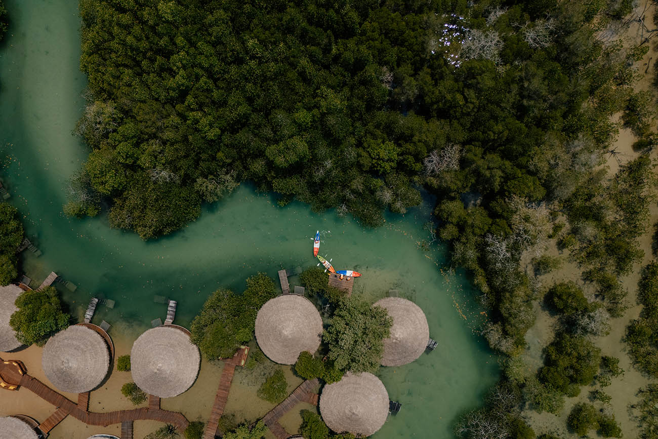 Ein ganz besonderes Erlebnis sind die Mangroven­wälder, die weite Teile der Ostküste säumen. Mit dem Kajak lässt sich in diese grüne, stille Welt eintauchen – die verschlungenen Wasserkanäle zwischen den Wurzeln wirken wie ein natürliches Labyrinth, in dem die Zeit stillzustehen scheint. Hier ist es schattig, ruhig und von einer ganz eigenen, fast mystischen Atmosphäre geprägt. Wer Glück hat, begegnet dabei Reihern, Eisvögeln oder anderen Wasservögeln, die in den Mangroven leben.