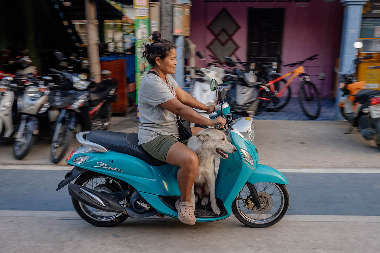 Das wichtigste Fortbewegungsmittel auf Koh Payam ist der Motorroller. Es gibt keine Autos. Roller (100–125 ccm Automatikmotorräder) lassen sich direkt am Pier oder über die meisten Unterkünfte für ca. 200–300 Baht pro Tag mieten. Die Straßen der Insel sind mittlerweile gut ausgebaut, was das Erkunden per Roller zu einem echten Vergnügen macht. Wer so unterwegs ist, entdeckt die Insel auf eigene Faust – und das ist die schönste Art zu reisen. Helm ist Pflicht und empfehlenswert auch wenn sich die wenigsten daran halten.