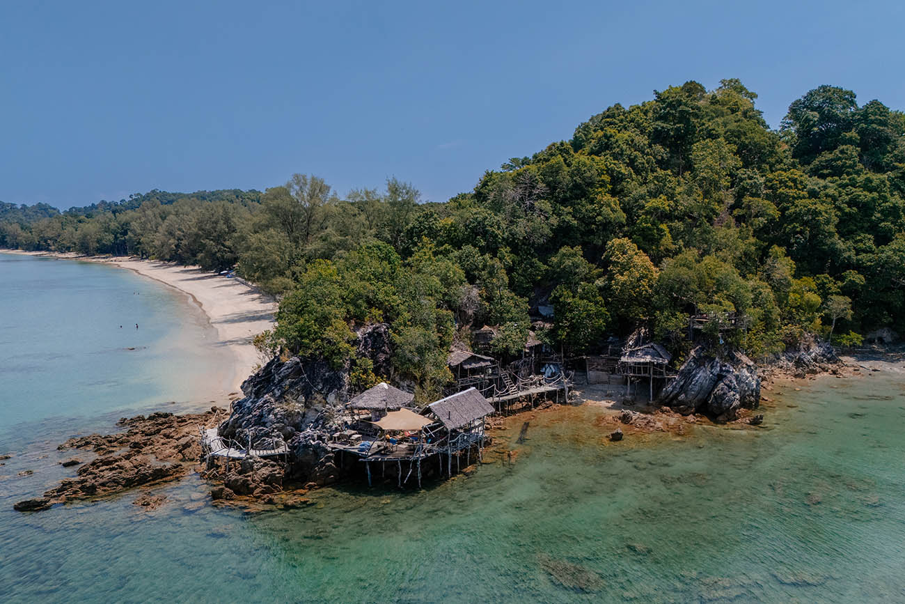 Ein paar Meter weiter im Inneren des Dorfes liegt die Eagle Bar, die mit einer erhöhten Lage und einer besonders schönen Aussicht auf die Mangroven und das Meer überrascht. Kein Trubel, kein Luxus – sondern ein authentischer Einblick in das einfache Leben der Moken, das Koh Phayam bis heute so besonders macht.